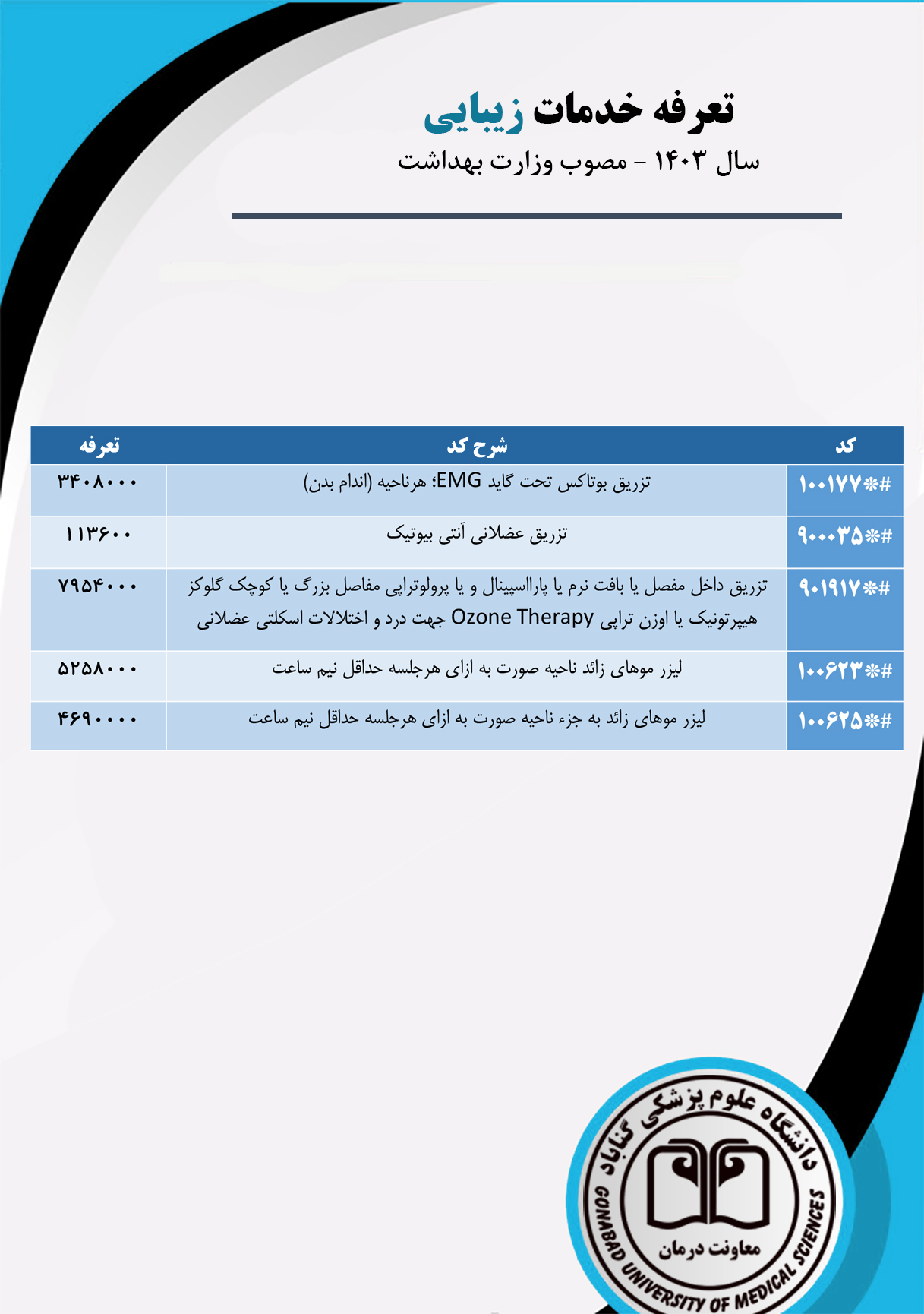 تعرفه خدمات زیبایی (بخش خصوصی)