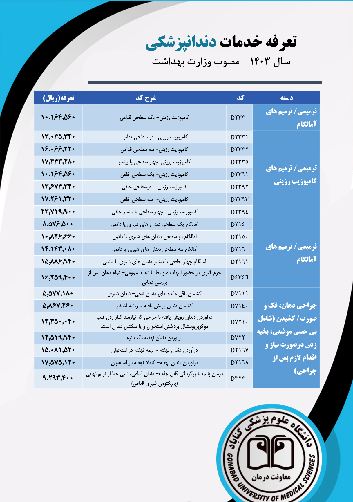 دانلود تعرفه خدمات دندانپزشکی (بخش خصوصی)